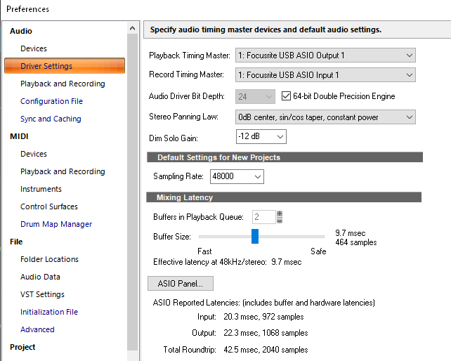 Hi, I've wrestled with one project in terms of audio dropouts. It's so bad that, when it happens, it's no use restarting the audio engine. SO, I've consulted the Sonar manual, and one setting I should be able to change is the number in the Buffers in Playback Queue box under "Mixing Latency". Although I'm running a decent ASIO driver for my Scarlett 4i4, I'm unable to change the current setting "2". Can someone help, please?