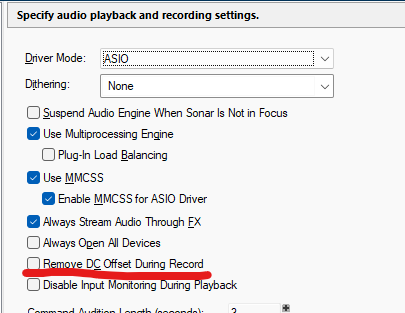 Would it be having the "Remove DC Offset During Record" checked? I had strange sound issues when I had that on... -