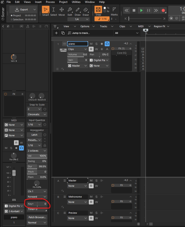 Currently, if I want to transpose a MIDI instrument non-destructively, I have to click-and-drag the line in the "Key+" area (see attached, circled). Because it is so sensitive and tiny, I find it difficult to get to the exact key I want.