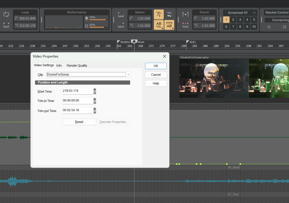 @57Gregy I wanted to also mention: I am typically importing the video with its related audio so... I move (mouse drag) that related audio track (from the video import) to get it placed so that it syncs up correctly with Sonar tracks. Then in the track inspector I can just copy that audio start time, then paste it in the Video Properties Start Time. -