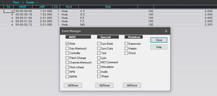 It's actually "Velocity", but in the Event Manager, Notes is your only option and includes all the basic data including velocity, so there's no way to isolate it from the rest. Makes sense because showing just velocity with no associated notes would be confusing - at least for me. Been like this since at least SONAR 8. Same with the missing labels for Velocity and MBT columns. . . please fix.