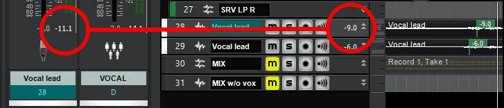 Later: Today everything seems right, so can't say what the past 2 days were all about. Another anomaly that seems to have corrected itself is one track meter that gave an uneven stereo level until today. These are both mono tracks, recorded mono, interleave set to mono, so I didn't understand why one gave a split level. Now it's fine. yesterday: today: -