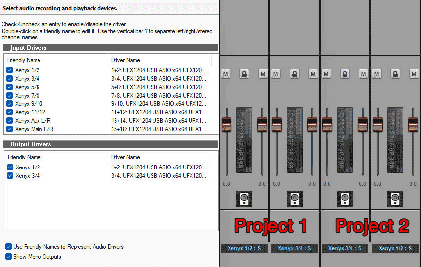 My interface has 2 outputs. Somehow they got crossed in Project 2. Never seen this before. Setting or glitch? Project 1 is a new project. Project 2 is a longtime project saved multiple times in SPlat and CbB. All settings are identical. So far only the 19th version of this project is affected.