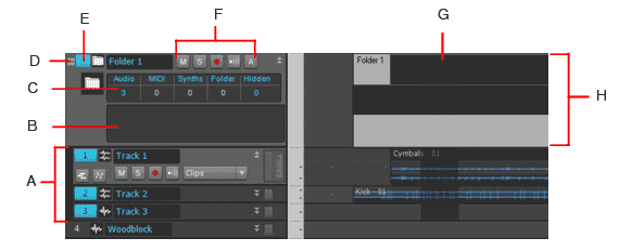 I sometimes collapse and expand track folders, but I never use the hide tracks function. Until I unknowingly did so by clicking the folder's numerical display under the column headers (C). Click the number under Hidden. All the tracks are now hidden and the number changes. Click the number under Audio and only the audio tracks are hidden. Click again and they're unhidden. And so on. Track Folder documentation only says you can hide tracks but doesn't explain how - while it does for muting, soloing, archiving, etc.