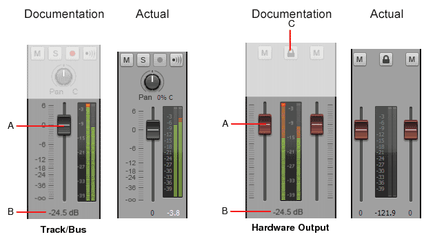 The online documentation shows what might have been early prototypes that never mad the cut? They're shown in Sonar X1 thru CbB documentation. The Mains (Hardware Output) channel is much wider than reality but the separated meters look cool and would look great on track channels too.