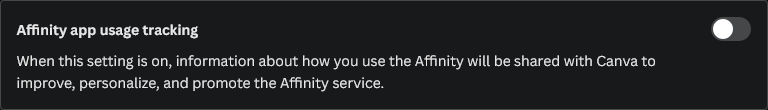 In my system, as long as Affinity has internet connection, this option can't be turned off, or rather, I can turn it off, but it will be on again the next time I open Settings. Only after I blocked it with my firewall, then it's off & stays off. So, this option is actually an internet connection detection 😀