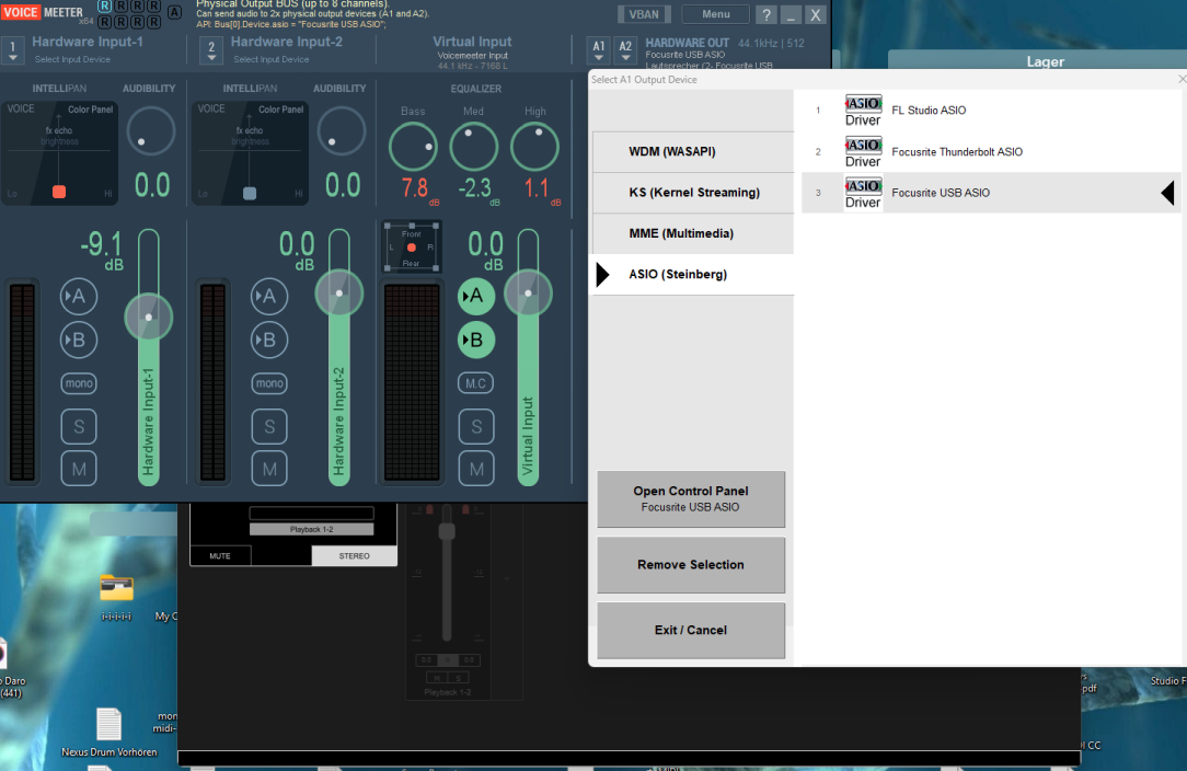 Astraios Posted Sunday at 10:14 PM Author Share Posted Sunday at 10:14 PM What so ever, if I switch to Wasapi Shared, there's no audio signal in Focusrite Control anymore, and then what? I think it'll be difficult without an audio signal 🫡Okay, I'm retired and I have time - I can already see myself busy with this crap all next week... Link to comment Share on other sites More sharing options...