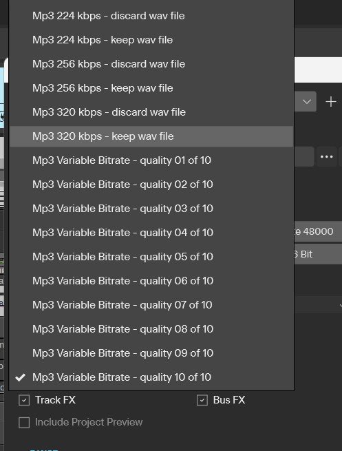 shane Posted Monday at 03:36 AM Share Posted Monday at 03:36 AM I can't believe I can't find this on my own, but: In previous versions (CbB specifically) I used "Aaron's Sonar Mp3 Patch.exe" to first export a .wav file, then export the highest quality LAME MP3 possible in a single click. I can't find this option today. Is it possible? ---Shane Link to comment Share on other sites More sharing options...