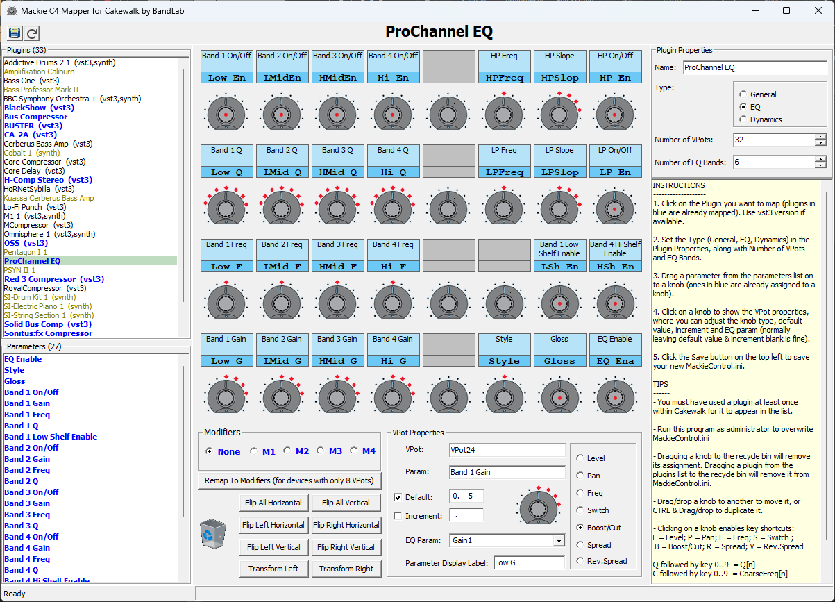 msmcleod Posted 24 minutes ago Share Posted 24 minutes ago Just FYI - the Mackie Control is not compatible with ACT, and instead uses a different method for controlling plugins - if you look at the Control Surface page in preferences, you'll see that the ACT checkbox is greyed out for Mackie Control: Plugin parameter mapping on the Mackie is defined in MackieControl.ini ( usually in C:\Program Files\Cakewalk\Shared Surfaces ). If no mapping is defined for a plugin, the parameters are just presented in parameter order. You can edit MackieControl.ini to define your mapping, but it's time consuming, so I wrote the C4 Mapper utility to edit MackieControl.ini for you: Although it's called C4 Mapper, it works with the main Mackie Control too - you just need to set "Number of VPots" to 8, and restrict your mapping to the top row of pots. Note: C4 Mapper uses the %APPDATA%\Cakewalk\ACT Data\genericpluginparams.xml file to determine what plugins/parameters are available. This file is only populated AFTER you've added a control surface in preferences, and is updated when you exit Sonar/CbB. So if you're not seeing a plugin in the list: Open Sonar, add that plugin to an audio track, then quit Sonar. If you want C4 Mapper to be added to Sonar/CbB's Utilities menu, just run this .reg file: c4mapper.reg Windows Registry Editor Version 5.00 [HKEY_LOCAL_MACHINE\SOFTWARE\Cakewalk Music Software\Tools Menu\C4 Mapper] "Type"="Generic" "ExePath"="C:\\Program Files\\Cakewalk\\Shared Surfaces\\C4Mapper.exe" "MenuText"="C4 Mapper" Link to comment Share on other sites More sharing options...