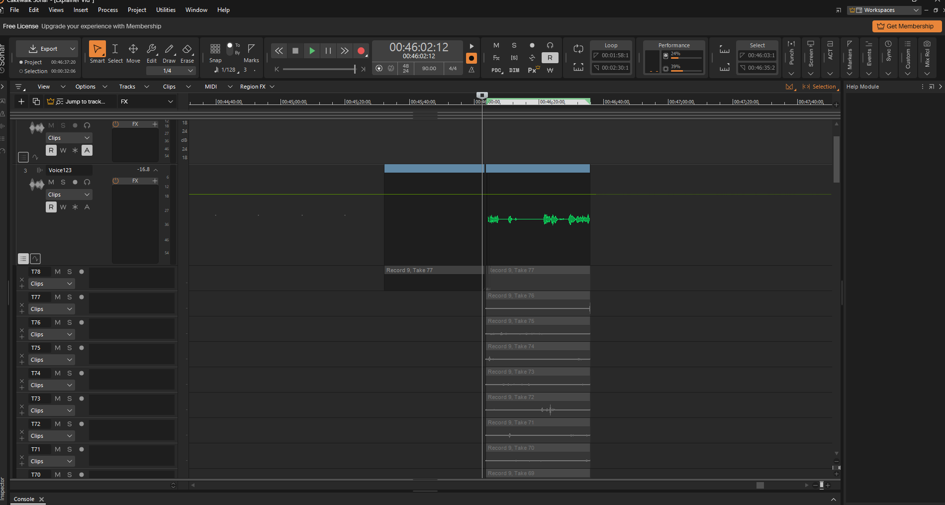 VisionPoint Media Group Posted 6 hours ago Share Posted 6 hours ago (edited) Hello, I recorded something and didn't realize that the loop was one so it was comping. I need to move the take lanes around so that it will make one long track instead of a vertical with 77 Take lanes. I could move them around in the old, but this one has them all connected and I can't move them individually. Ideas? Thanks for you help Edited 6 hours ago by VisionPoint Media Group Add Picture and Tag Link to comment Share on other sites More sharing options...