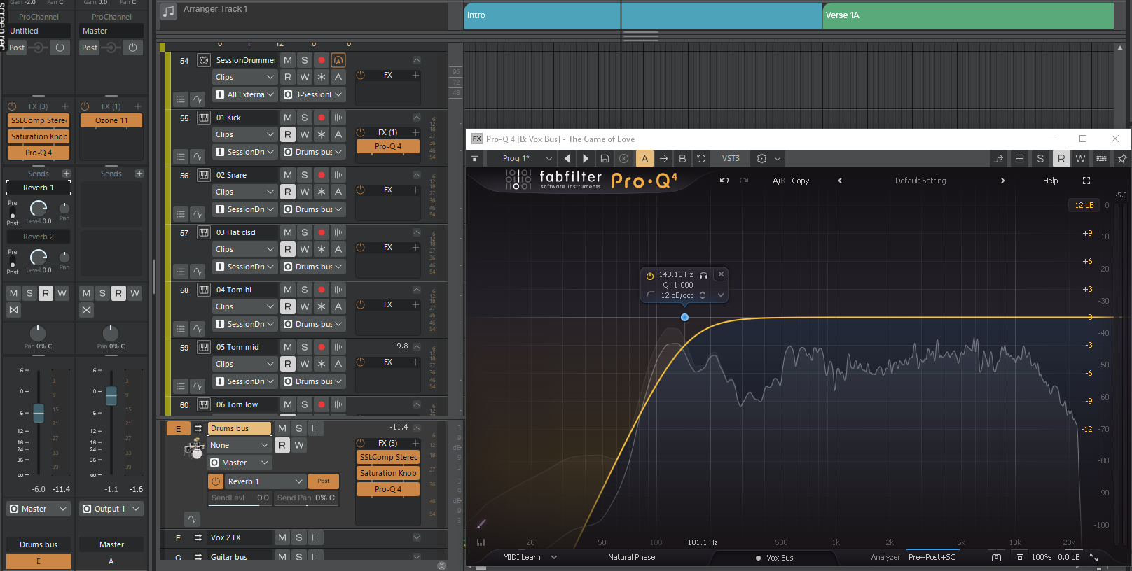 Cobus Prinsloo Posted 2 hours ago Share Posted 2 hours ago I thought my mix was perfect until I noticed that sound from my Drums bus feeds into my Vox bus! The open EQ is from my Vox bus, but the sonic spectrum on display is coming from my drums. I assume this is happening because both my Drums bus and Vocals bus have sends to the same Reverb bus to ensure that they share the same space. Is there a better way of sharing the same reverb among different buses? Link to comment Share on other sites More sharing options...