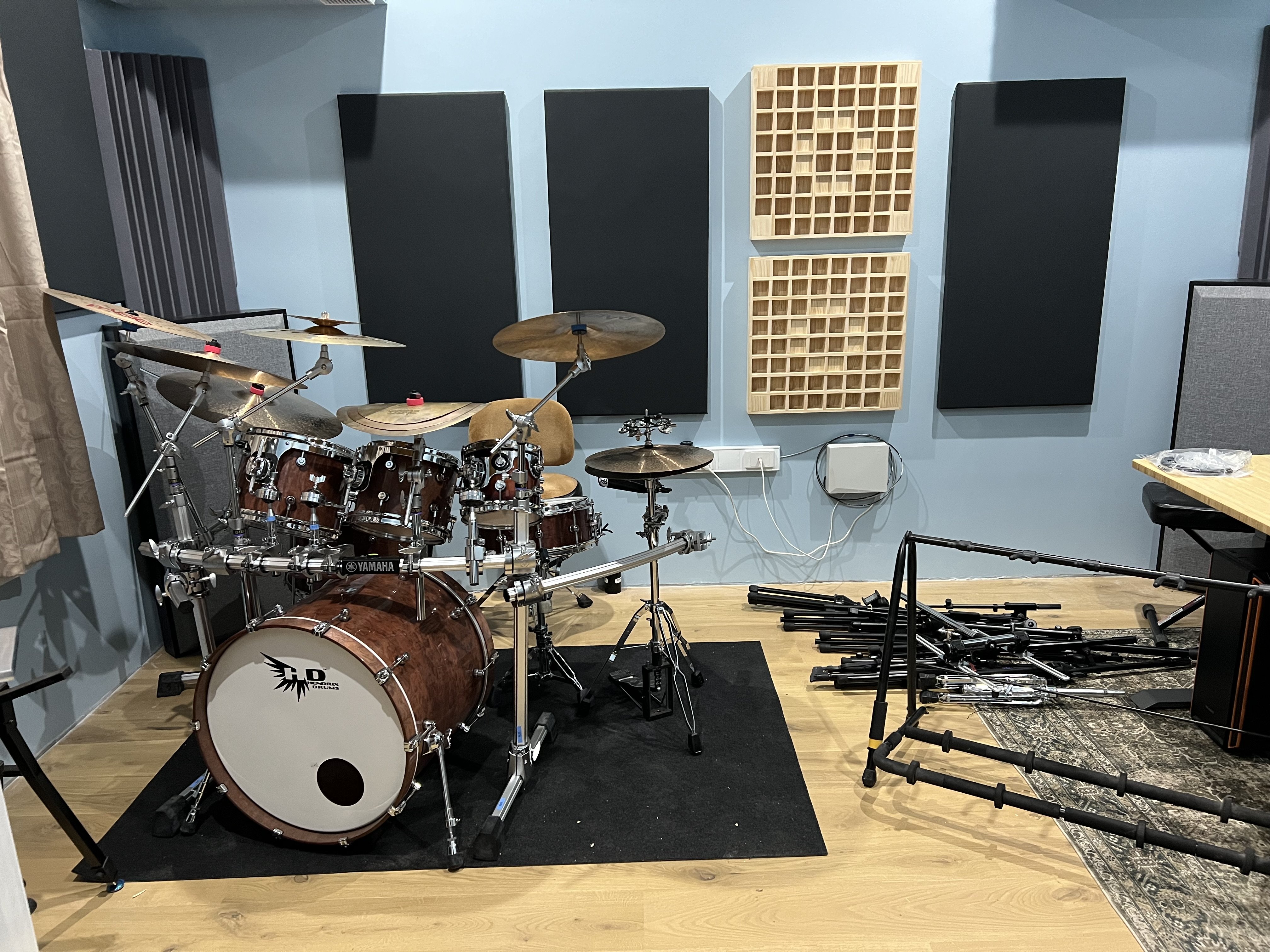 Tony Carpenter Posted 5 hours ago Posted 5 hours ago So, after moving to Australia again this year, for the last time, I have built close to my dream studio. Close, why?, because I couldn't afford to pay to do outside walls of my 115yr old house as well as everything inside. I went the whole hog on isolation and air tight, and, it worked!!. 1000% sound reduction outside room window and even more at on street etc. So, from 105db at drum kit to 65 outside the window. Means the wife can watch TV in ajoining room without turning it up :), so, she's happy. And, the room sounds great!. Here are photos of bare and with drums setup so far. 1